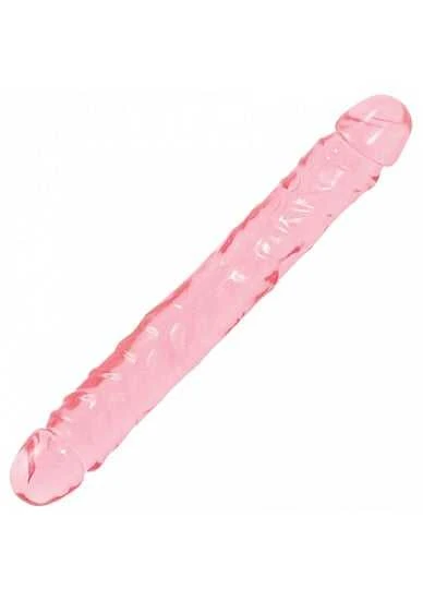 Doc Johnsons 12 Crystal Jellies JR. Double Dong is a soft and flexible variation of the original dong that started it all. This double-ended cock has the traditional thickness and veiny texture we all know and love plus a flexible shaft and glistening color options! Available in Pink Clear and Purple. All of our Crystal Jellies are from non-phthalate body-safe material which includes Docs antibacterial Sil-A-Gel formula and are proudly made in America.