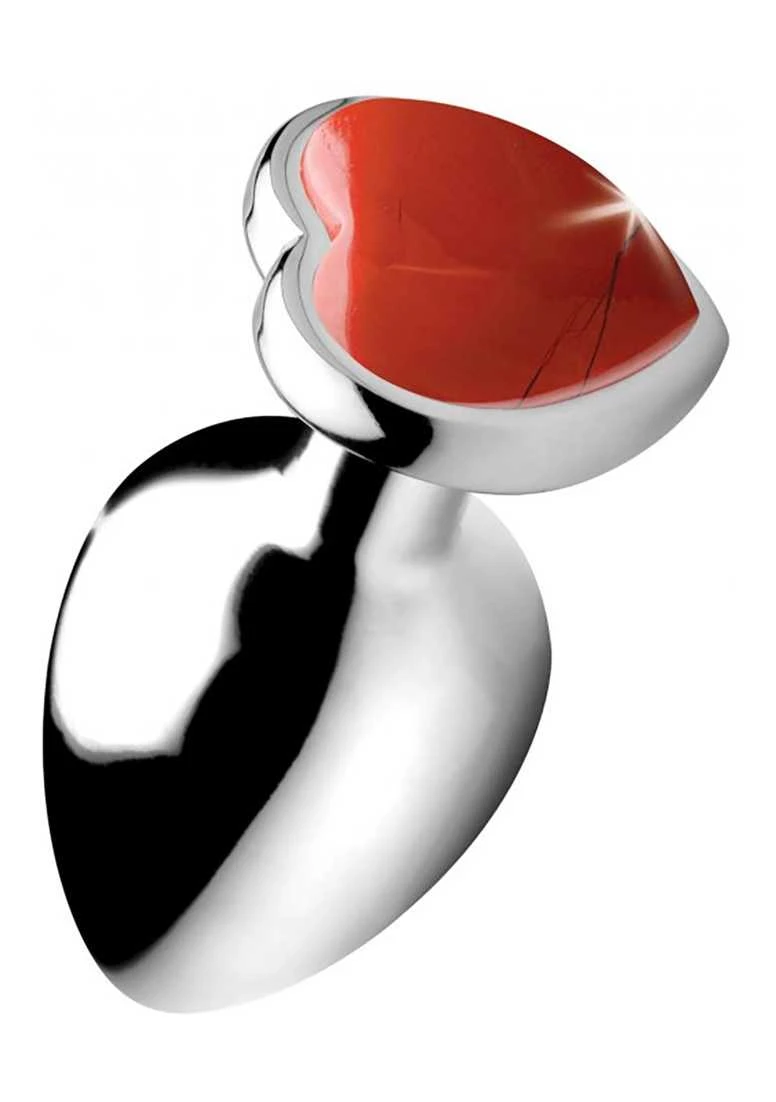 Energize your backdoor with this Red Jasper Heart! This metallic butt plug features an energetic Red Jasper gem to stir up passion and your supplement your inner strength. Stimulate your creativity courage and sexual energy – perfect for beginners and experts alike!