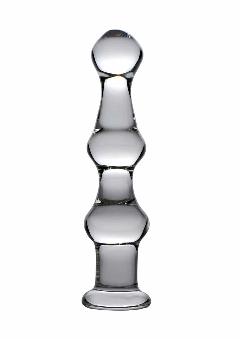 Penetrate yourself with a beautiful glass dildo distinctly shaped for explorations of ecstasy! The three-bump design allows you to move at your own pace as you pleasure yourself vaginally or anally savoring the smooth hard material. This shatter-resistant glass is perfect for experimenting with temperature play heating or cooling the dildo in water before insertion. Because it is non-porous you can always ensure a thorough sanitization with mild soap and warm water. Glass is hypoallergenic and can be used with any lubricant of your choosing.