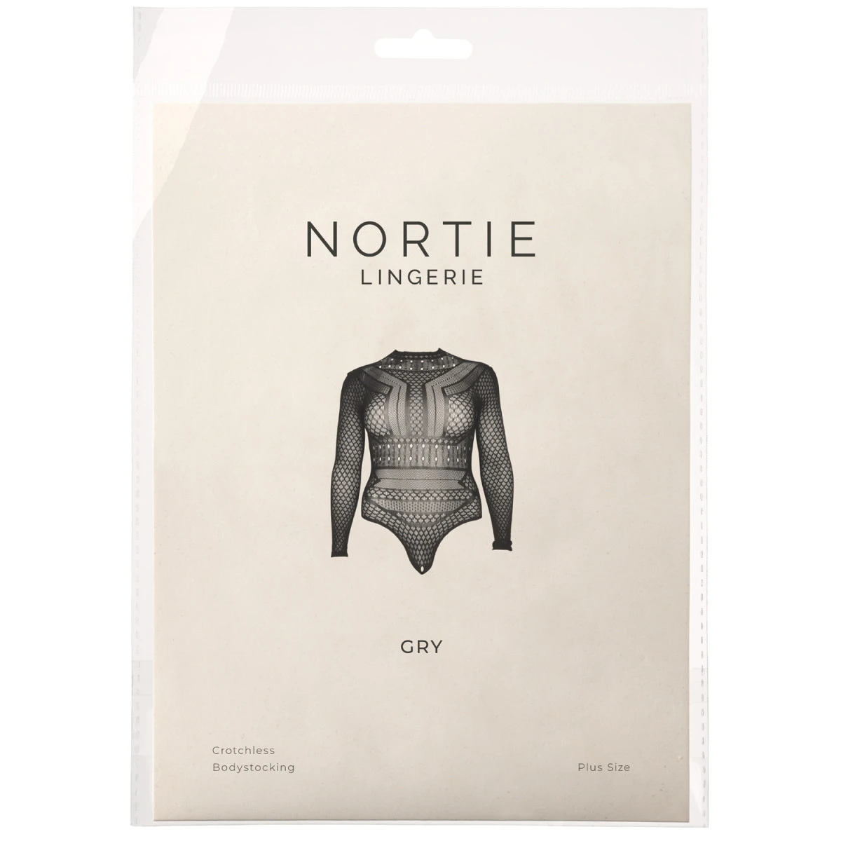 Draag Gry gewoon zo, of met je favoriete nieuwe look. De bodystocking is gemaakt van stretchy polyamide en elasthaan. Het plus size model past maat 44-48.